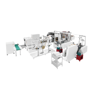 Линия RZFD-450 T/F, состоящая из нескольких синхронизированных друг с другом узлов, предназначенная для изготовления бумажных пакетов, имеющих прямоугольное дно и прямоугольные ручки. Устройство широко распространено среди крупного и среднего бизнеса, позволяя производить удобные пакеты для товаров, подарочные или брендированные варианты, что находит свое применение в маркетинге и ритейле.