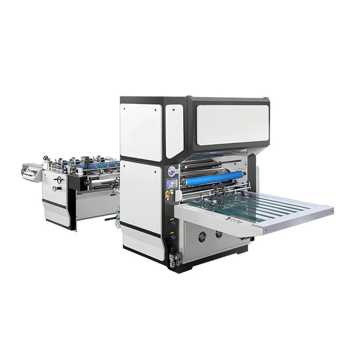 Промышленный ламинатор бумаги с функцией продольной резки FM-1050 собран с использованием качественных комплектующих узлов и механизмов. В широком смысле система основана на действии валиков на разных этапах цикла, и состоит из системы автоматической подачи материала покрытия на подложку, системы дозирования клея, за которой следует сушильный узел для сушки полотна уже с покрытием перед процессом прессования и резки. Автомат для резки с частотно регулируемыми скоростными режимами может быть полностью синхронизирован с ламинатором. Есть следящий фотоэлектрический датчик.