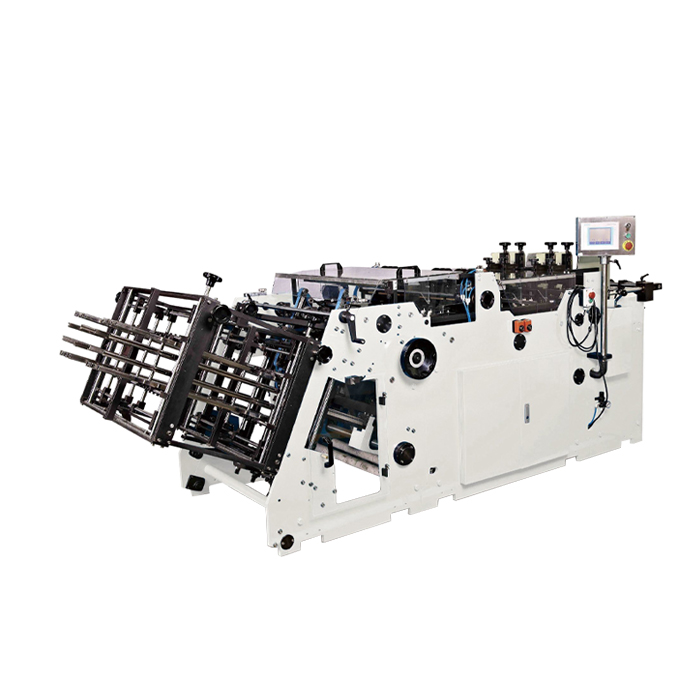 Картонажная машина для изготовления коробок под фастфуд L1000/2-C полностью соответствует стандартам безопасности труда. Принцип действия. Вакуумный насос приводит в действие присоски, которые забирают заготовки одну-за-одной из магазинов и выгружают их на две параллельные ременные линии протягивания. Вначале клапаны заготовки промазываются слоем клеевого раствора, подаваемого станцией. В качестве опции может быть установлена система нанесения горячего клея, что расширяет возможности машины по использованию материала. Затем на заготовки опускаются деревянные матричные формы, чтобы так продавить их прессом и сформировать боковые стороны лотков. На следующем этапе правильно сгруппированные контейнеры загоняются в формующие направляющие, где продавленные стенки склеиваются. Раздвижные направляющие можно регулировать по ширине и длине заготовок. Здесь коробка складывается с другими коробками, которые собраны и сформированы таким же циклом.